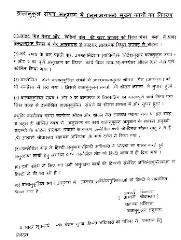 वातानुकूल संयंत्र अनुभाग के मुख्य कार्यों का विवरण